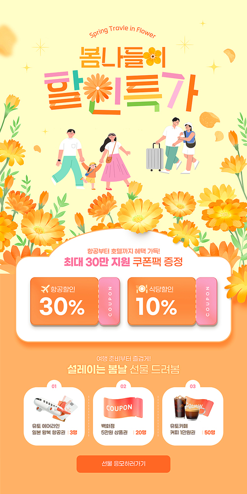 Spring limited season benefit coupon in a box on a yellow flower field